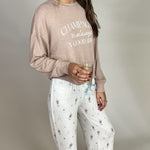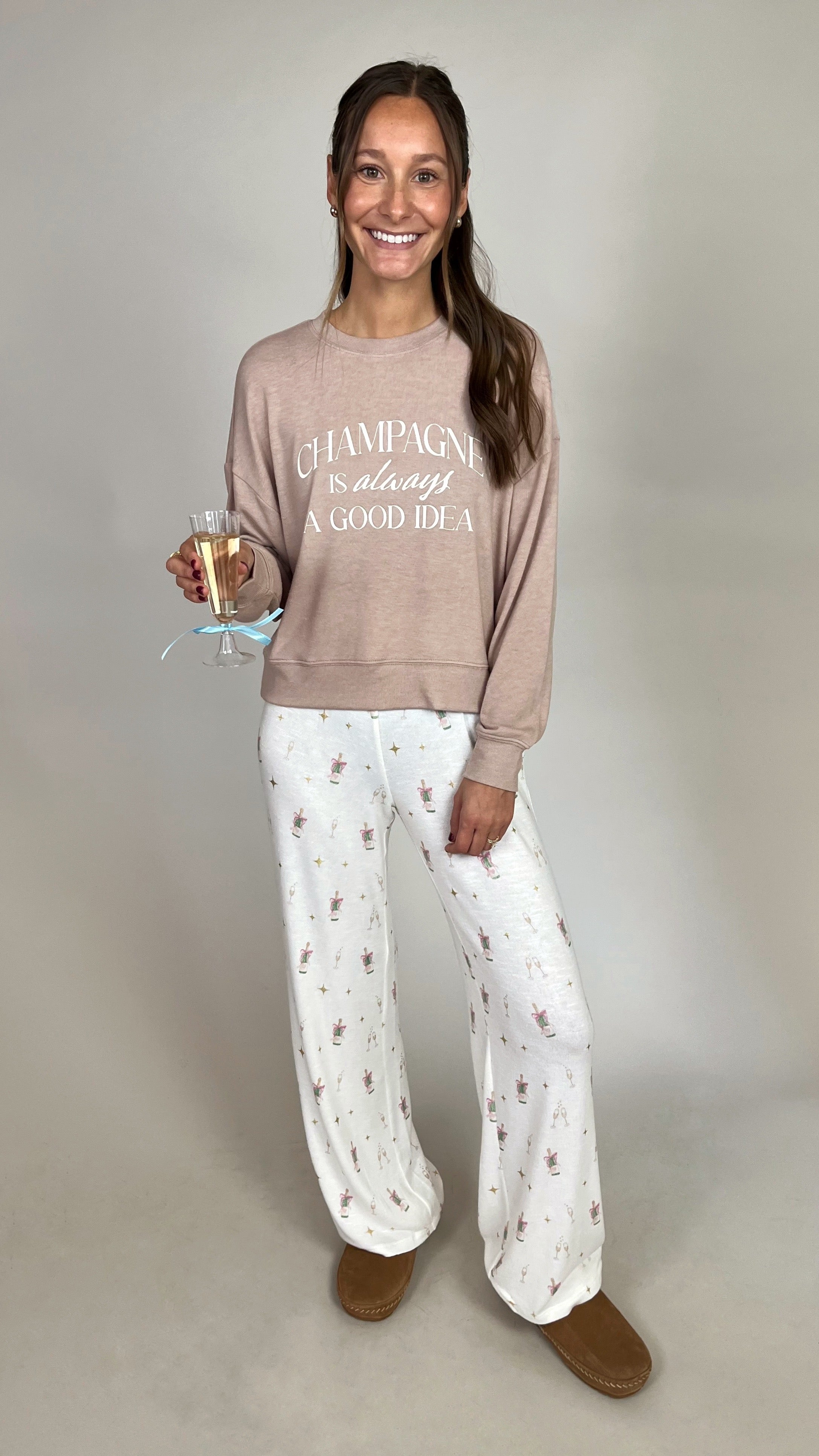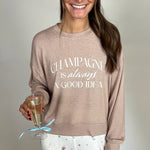 Our brushed sweater knit gives this long sleeve its soft, cozy feel. A relaxed fit makes it perfect for curling up at home while the "Champagne is Always A Good Idea" print adds a playful touch.