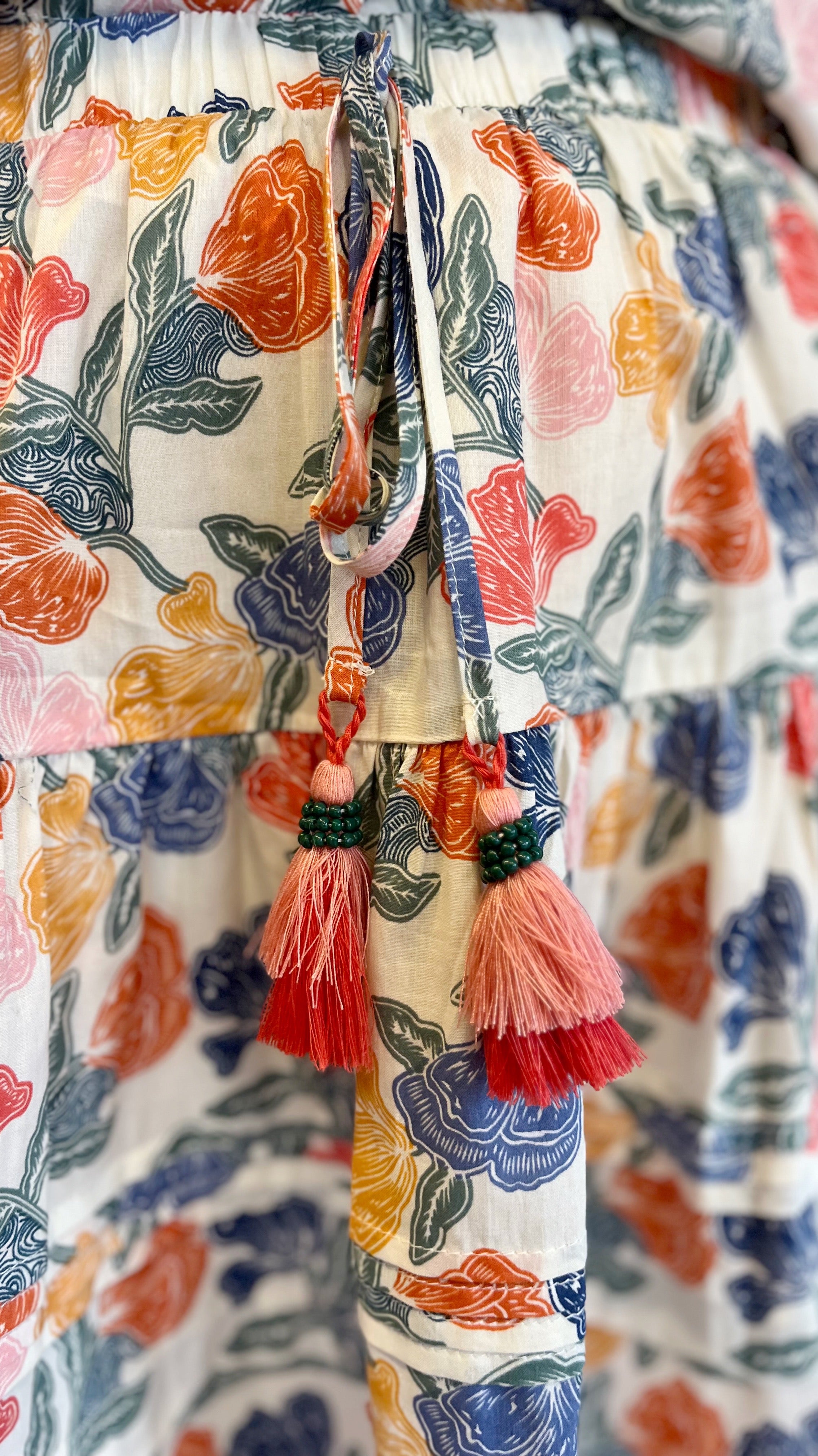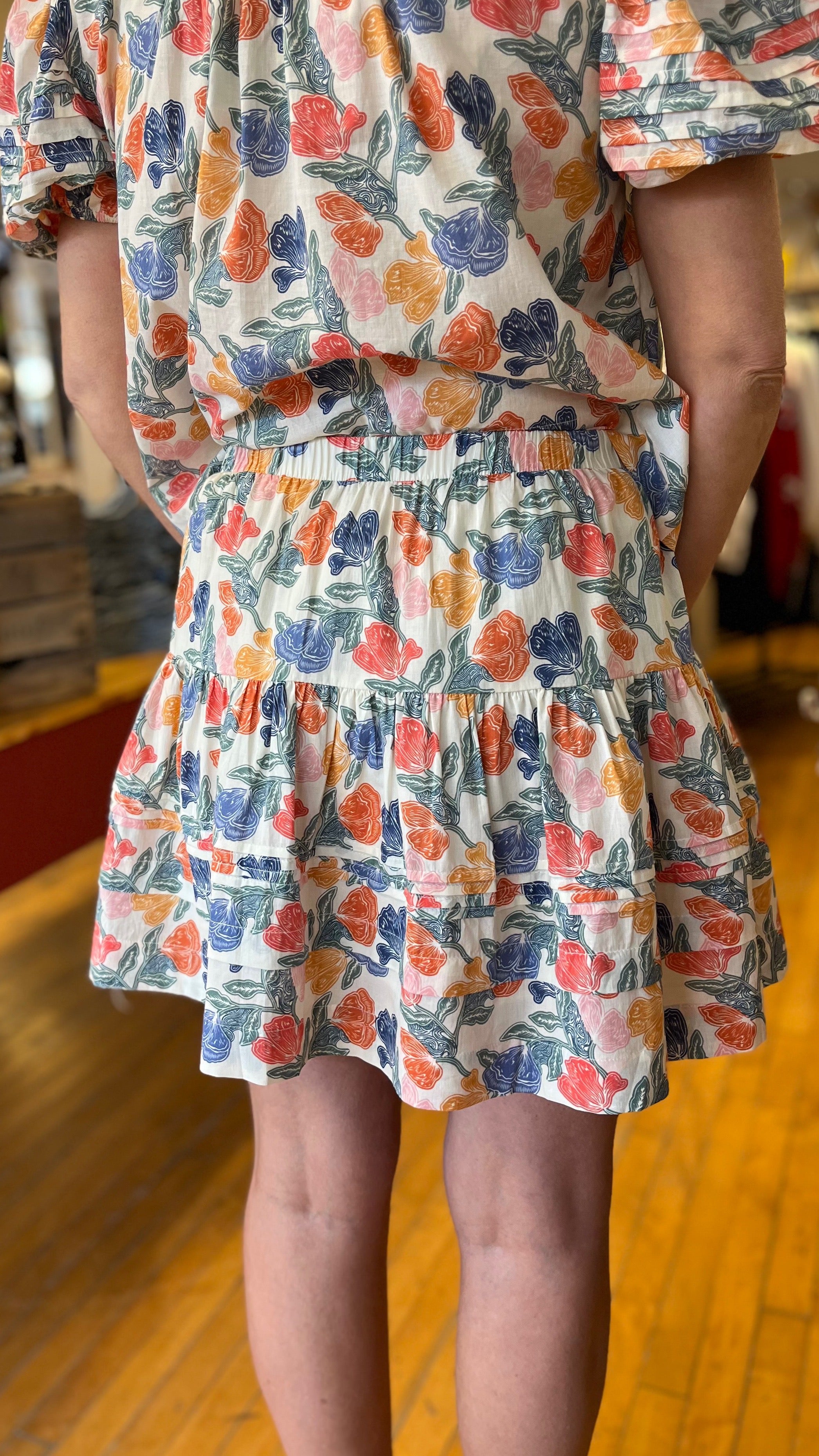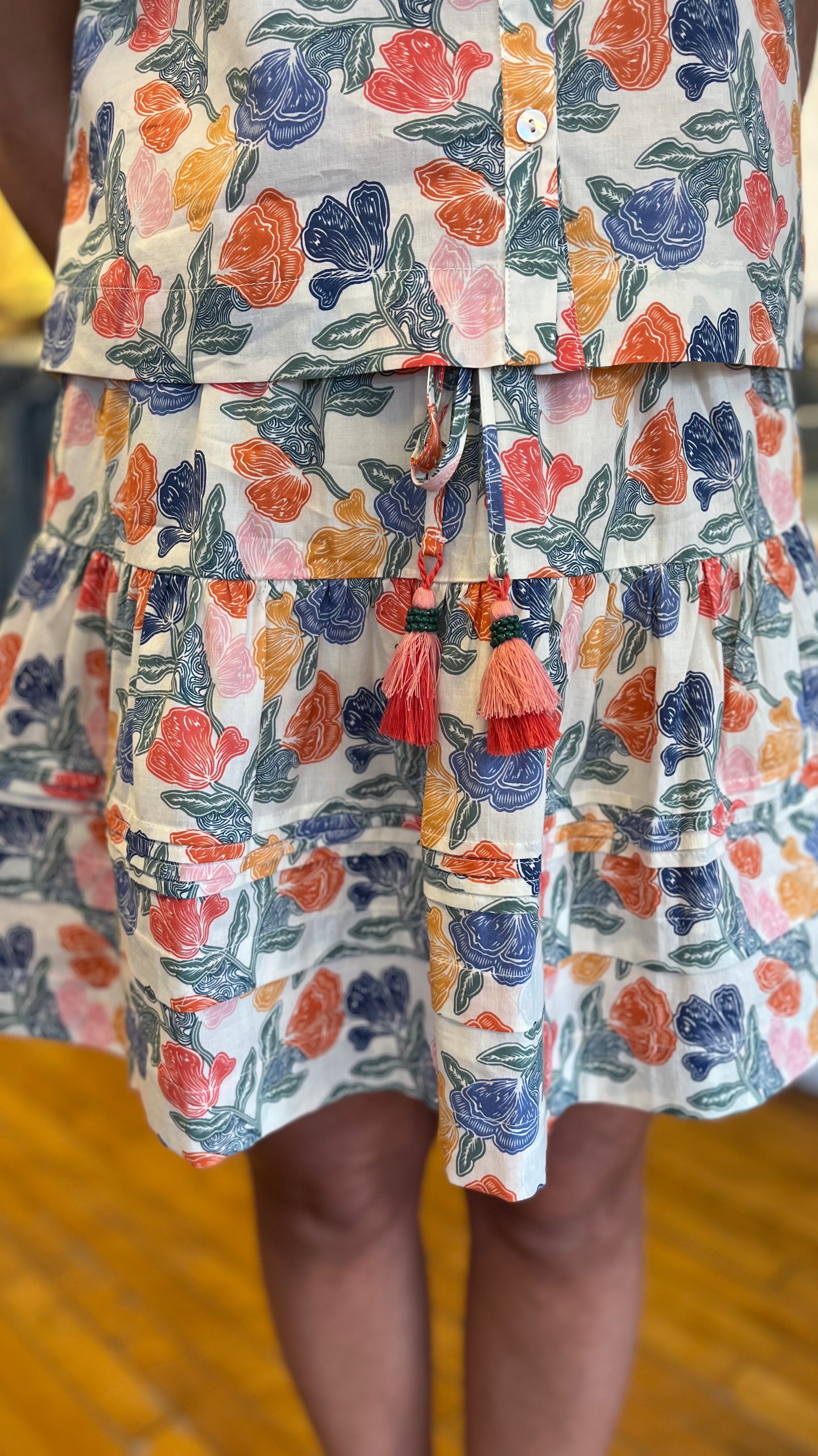 Breezy, feminine and effortlessly fun, this floral skirt is a warm weather must have. Fully lined this skirt features an elastic waistband for an easy fit and tasseled tie front for added charm. Wear with the Chloe Top or a coordinating tee and jean jacket for a fresh look this spring.