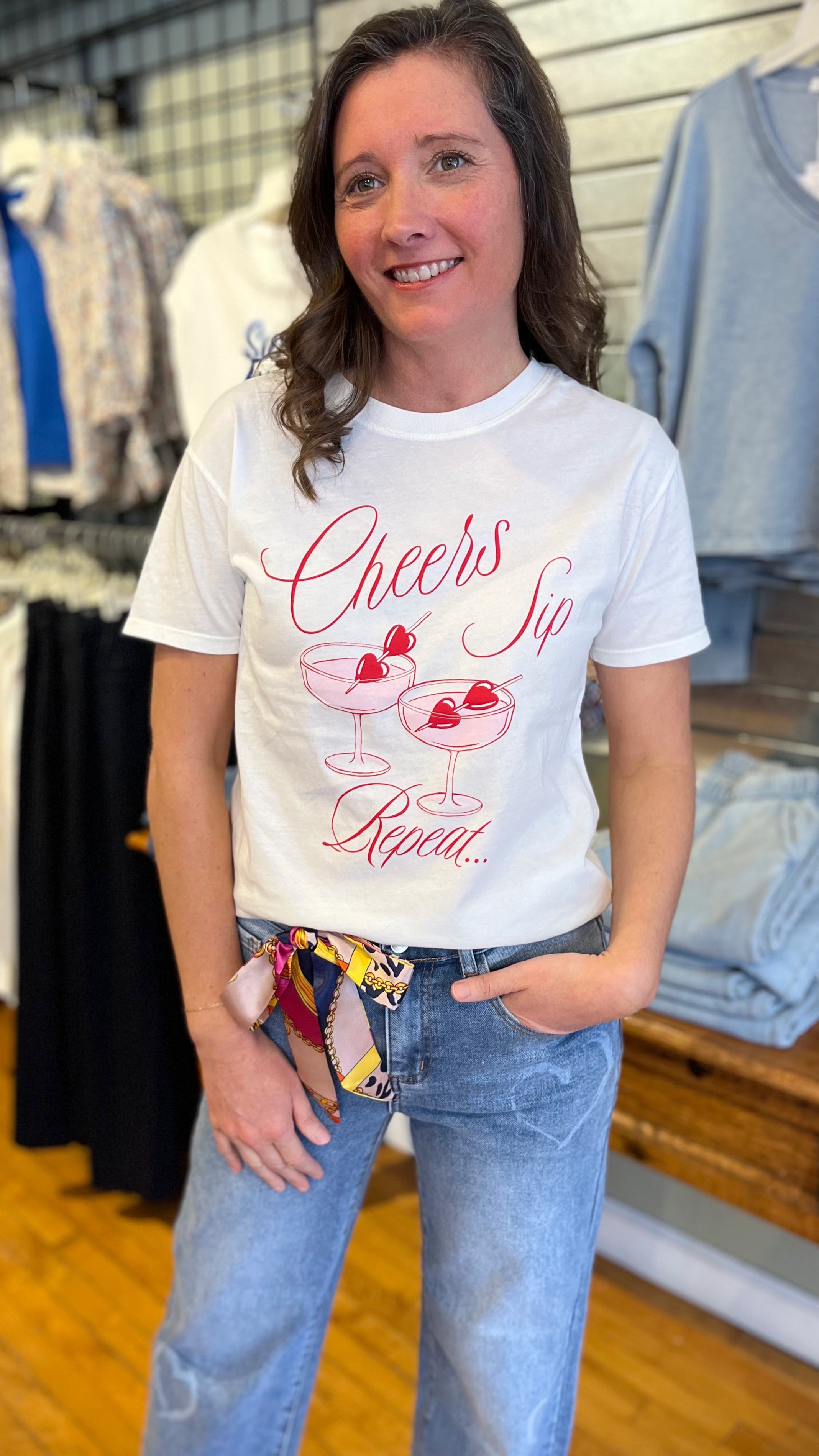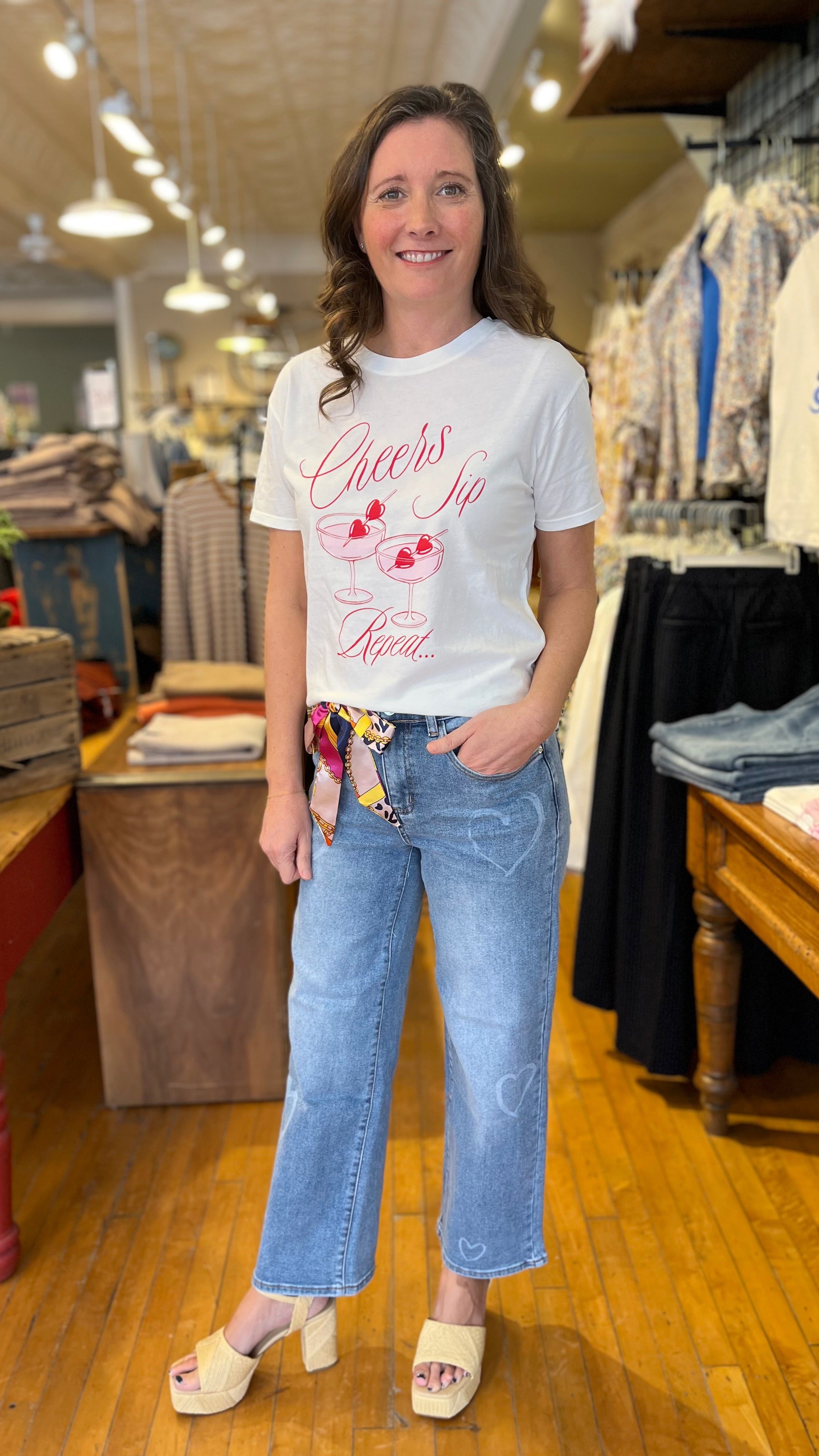 Designed with a relaxed, oversized fit, this soft cotton tee features a playful cocktail graphic that sets the mood for any casual day. Pair it with denim or joggers for an easy, festive vibe.