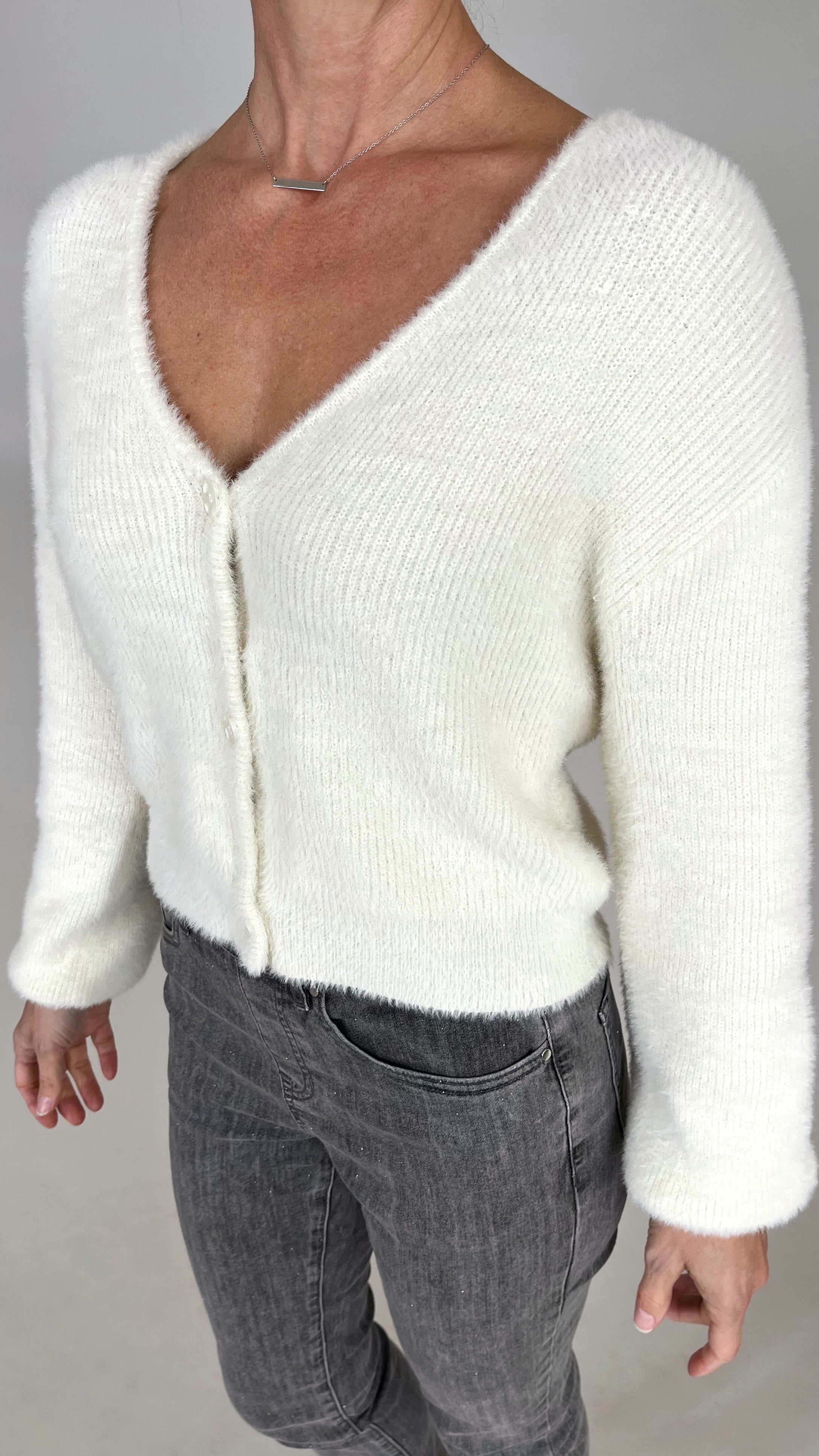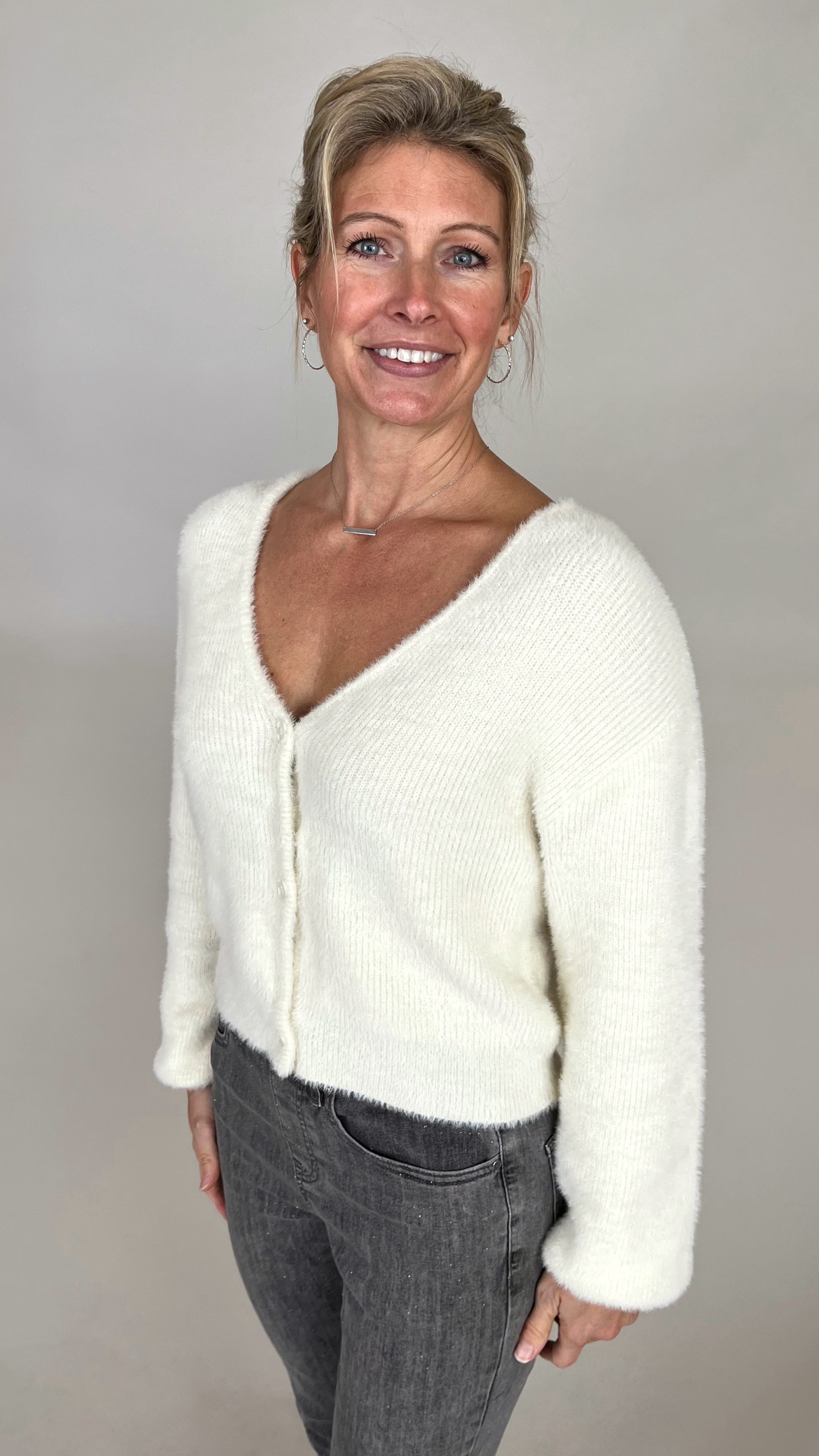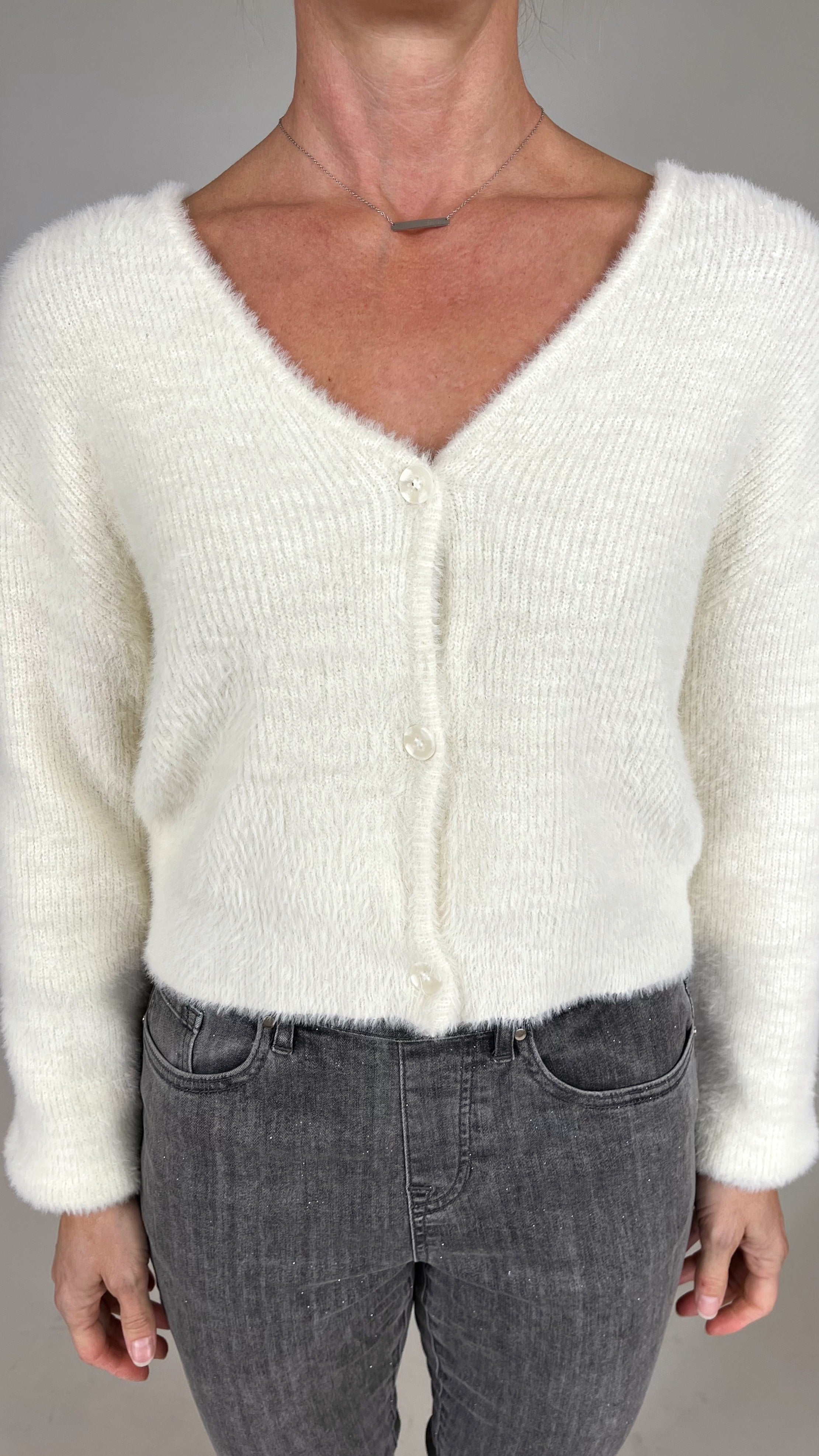 Soft, airy yarns and a cropped, button-front silhouette give this cardigan its fresh feel. Wear it solo for a minimal look or layered over your favorite tanks and tees for extra cozy charm.