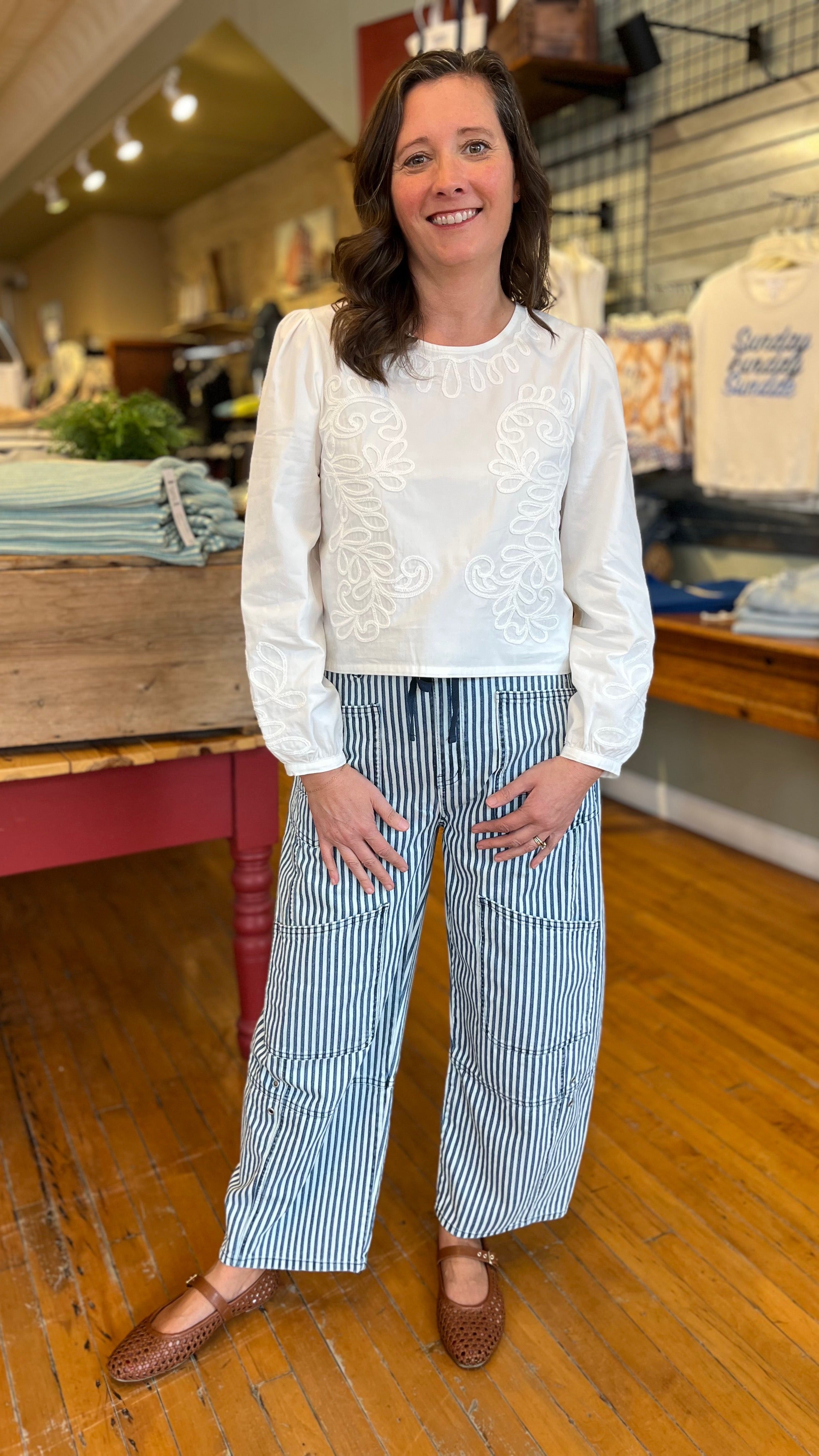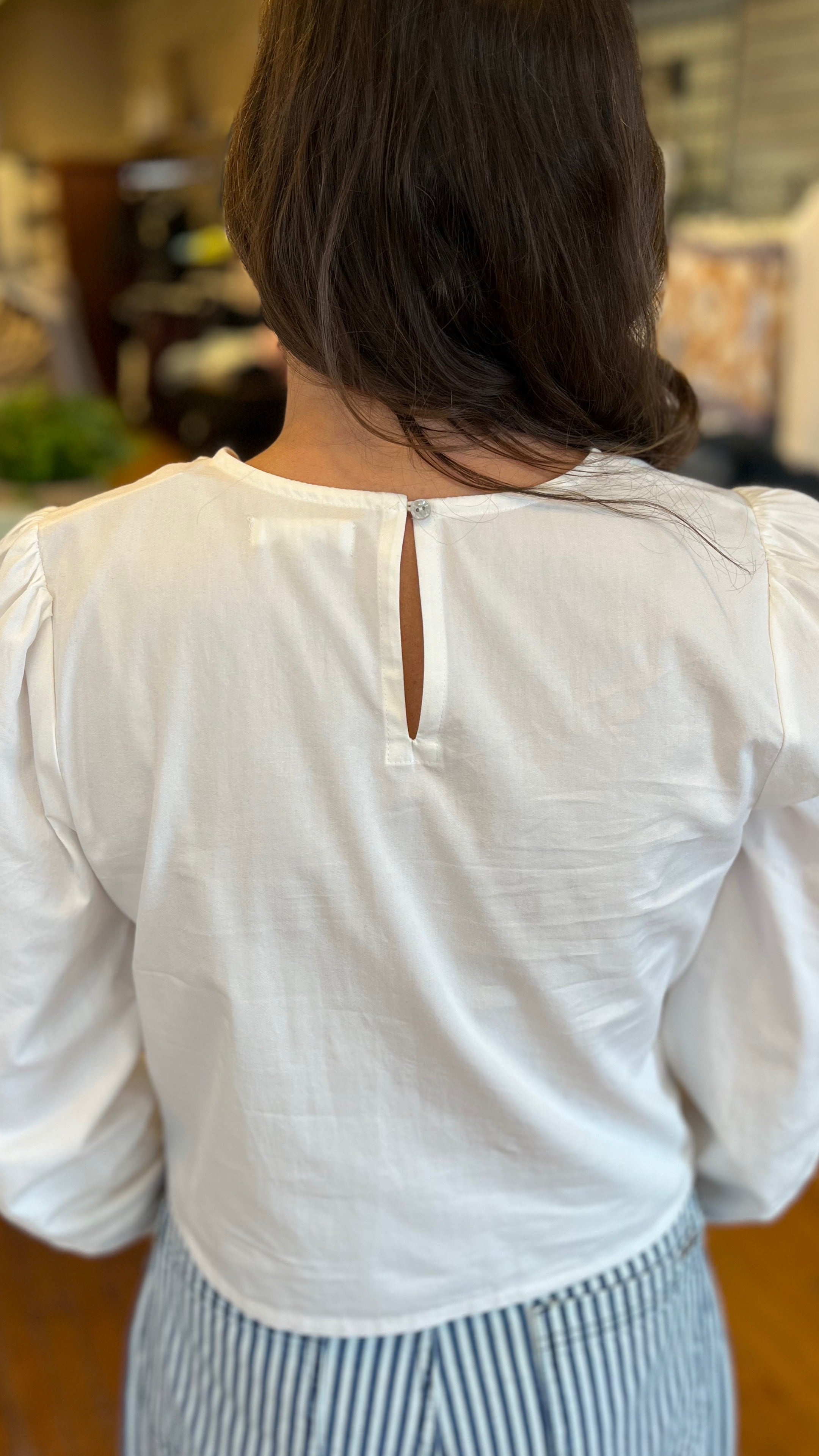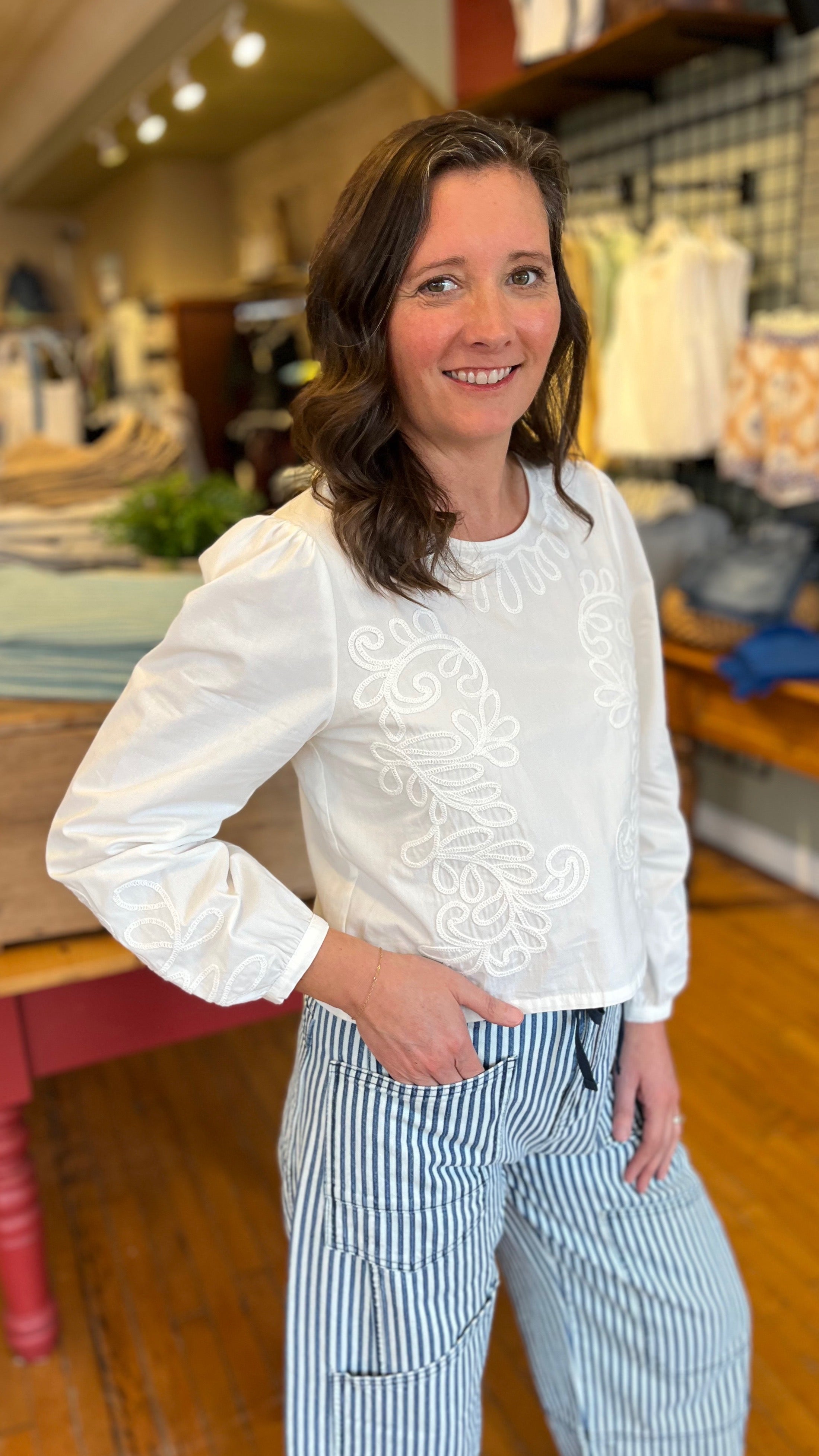 Getting dressed is easy with this effortless long sleeve top. Lightweight 100% cotton fabric will keep you comfortable while the embroidery detail will elevate your look instantly. We like to pair it with everything from denim to linen pants.
